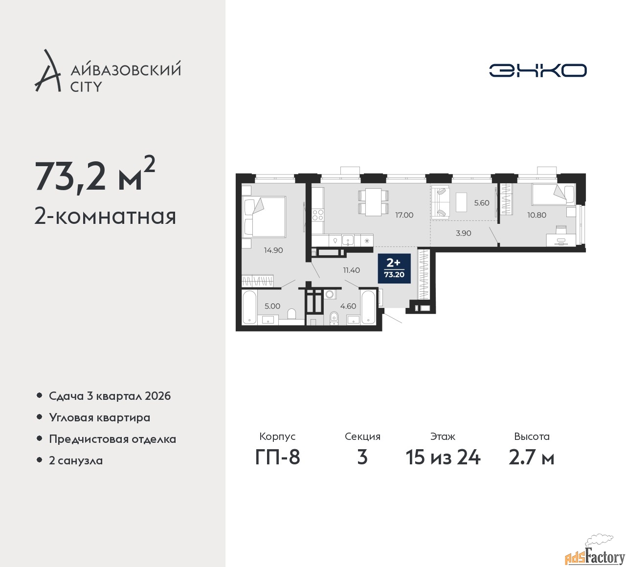 | Общая площадь (кв.м) | 73.2 |