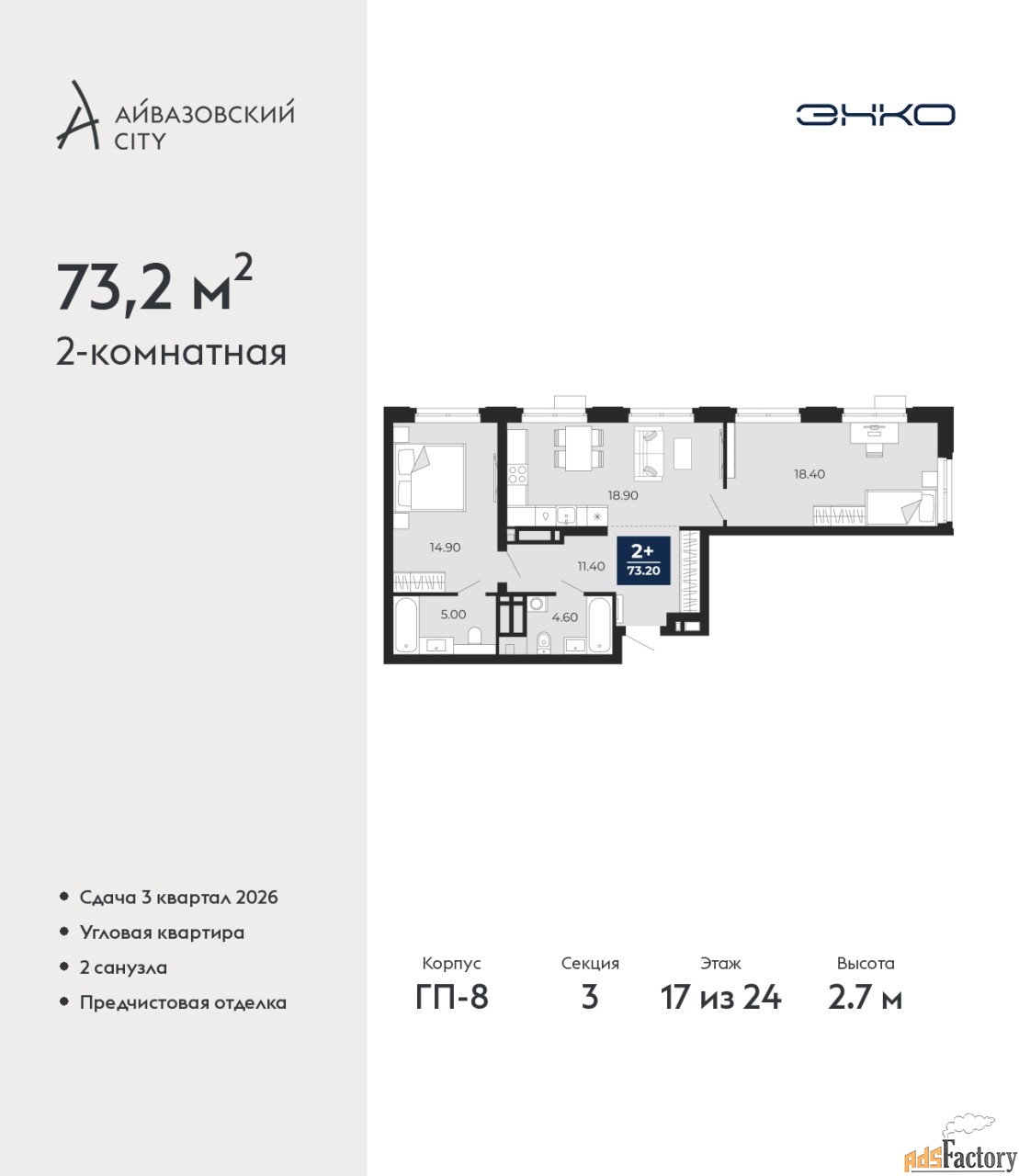 Дом монолитный, многоподъездный, переменной этажности, от 14 до 24 этажей. Квартира находится в 3-й секции высотой 24 этажа в корпусе ГП-8. На этаже 7 квартир. В подъезде 1 пассажирский и 1 грузовой лифт. Окончание строительства - 3 квартал 2026 года. Оформление сделки по договору долевого участия.