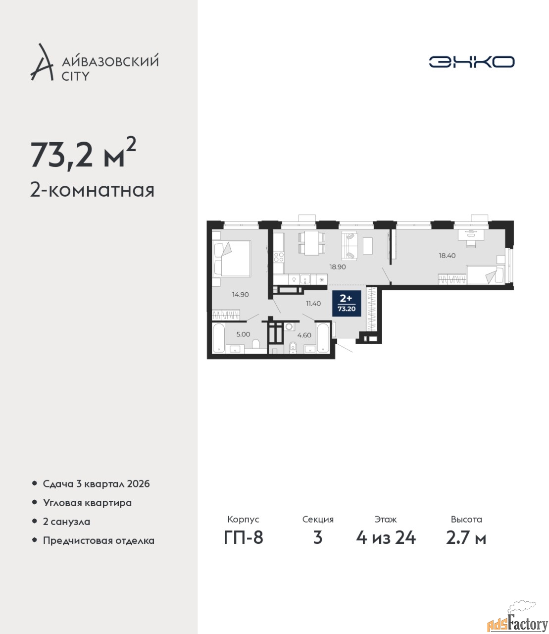 Дом монолитный, многоподъездный, переменной этажности, от 14 до 24 этажей. Квартира находится в 3-й секции высотой 24 этажа в корпусе ГП-8. На этаже 7 квартир. В подъезде 1 пассажирский и 1 грузовой лифт. Окончание строительства - 3 квартал 2026 года. Оформление сделки по договору долевого участия.