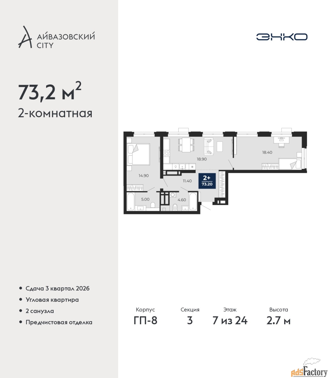 | Общая площадь (кв.м) | 73.2 |