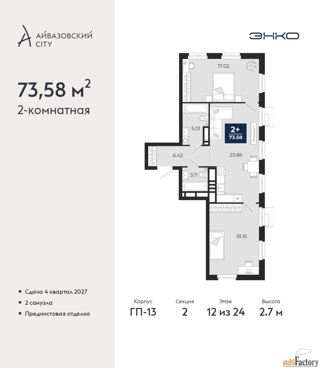 | Общая площадь (кв.м) | 73.58 |