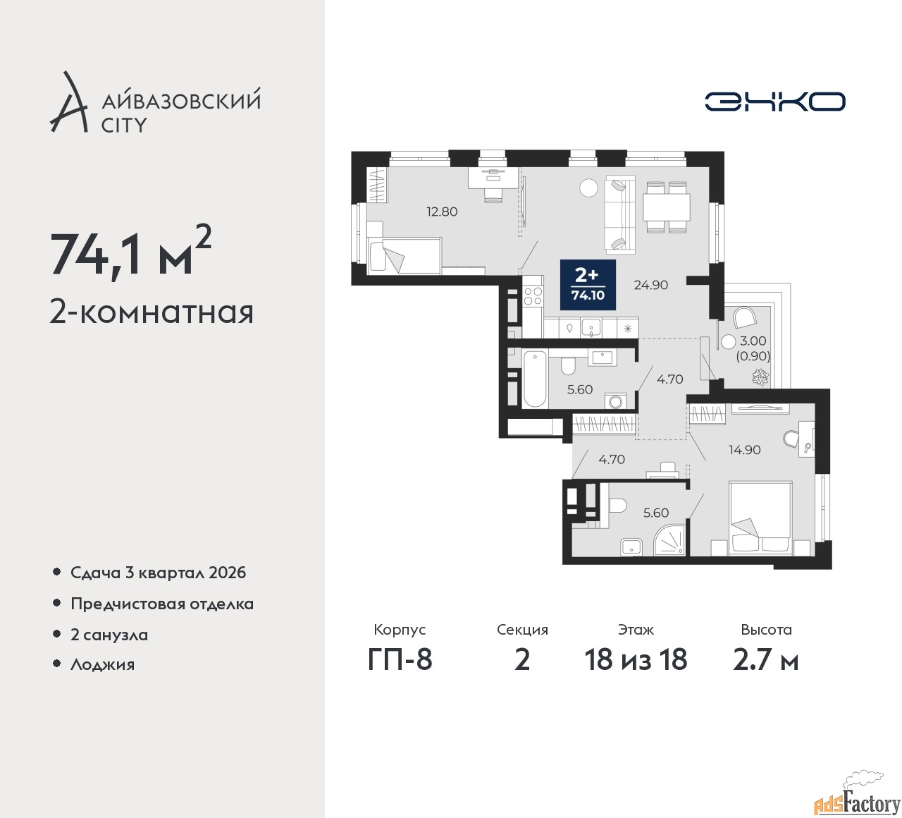 | Общая площадь (кв.м) | 74.1 |