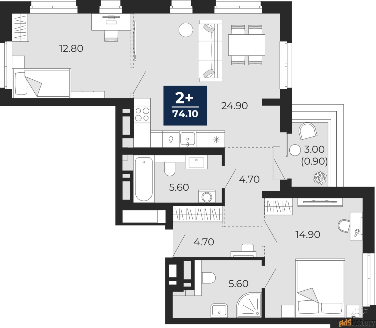 | Общая площадь (кв.м) | 74.1 |