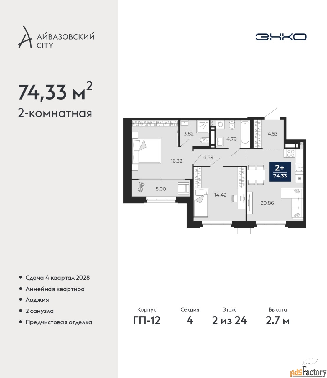 | Общая площадь (кв.м) | 74.33 |