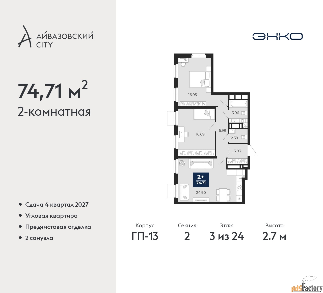 | Общая площадь (кв.м) | 74.71 |