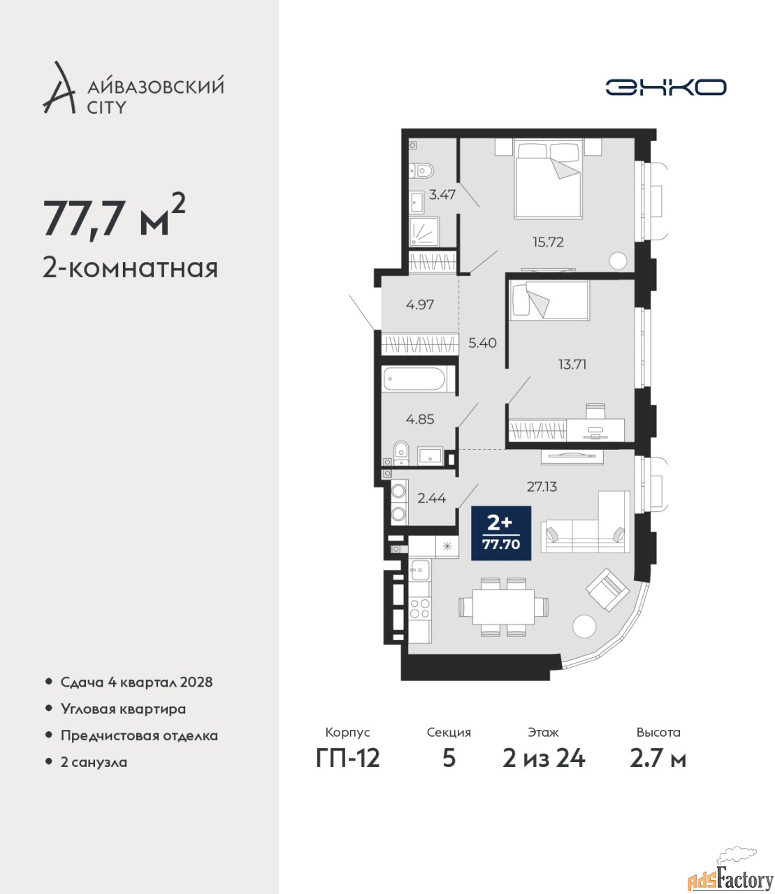 | Площадь кухни (кв.м) | 27.13 |