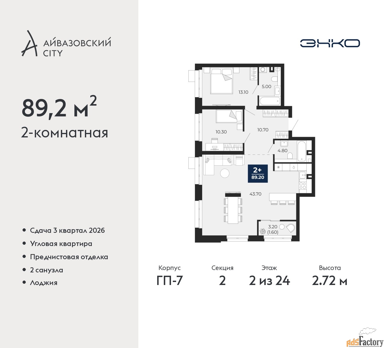 Дом монолитный, многоподъездный, переменной этажности, от 9 до 24 этажей. Квартира находится во 2-й секции высотой 24 этажа в корпусе ГП-7. На этаже 7 квартир. В подъезде 1 пассажирский и 2 грузовых лифта. Окончание строительства - 3 квартал 2026 года. Оформление сделки по договору долевого участия.