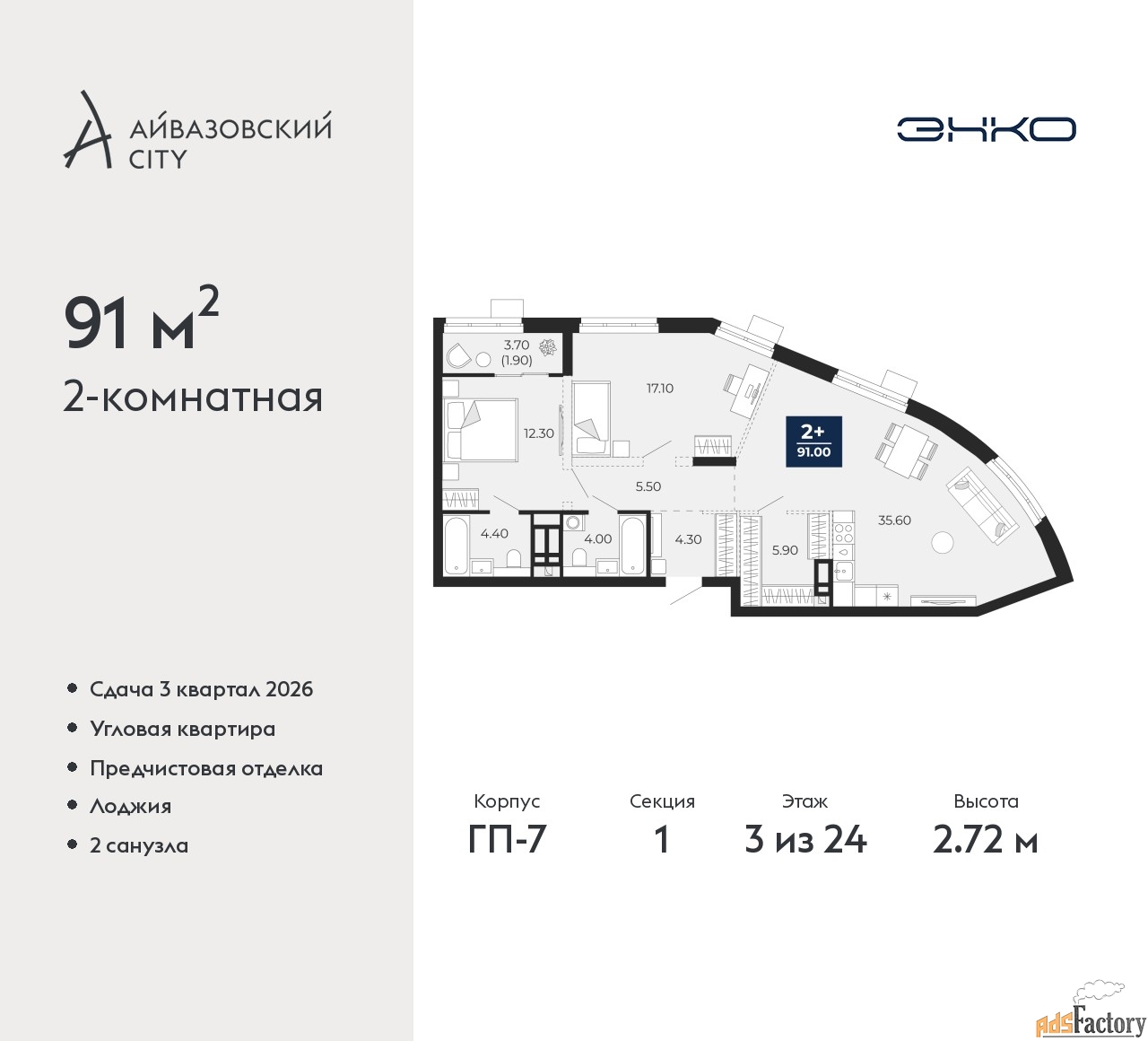 | Общая площадь (кв.м) | 91 |