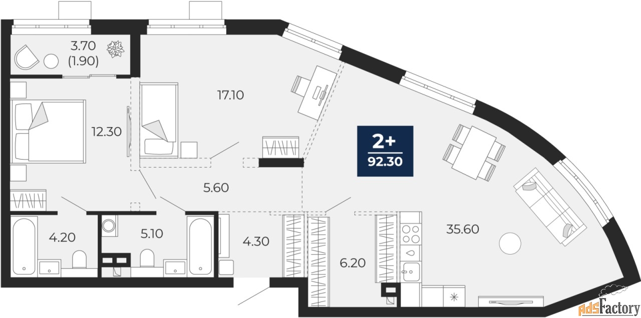 | Общая площадь (кв.м) | 92.3 |