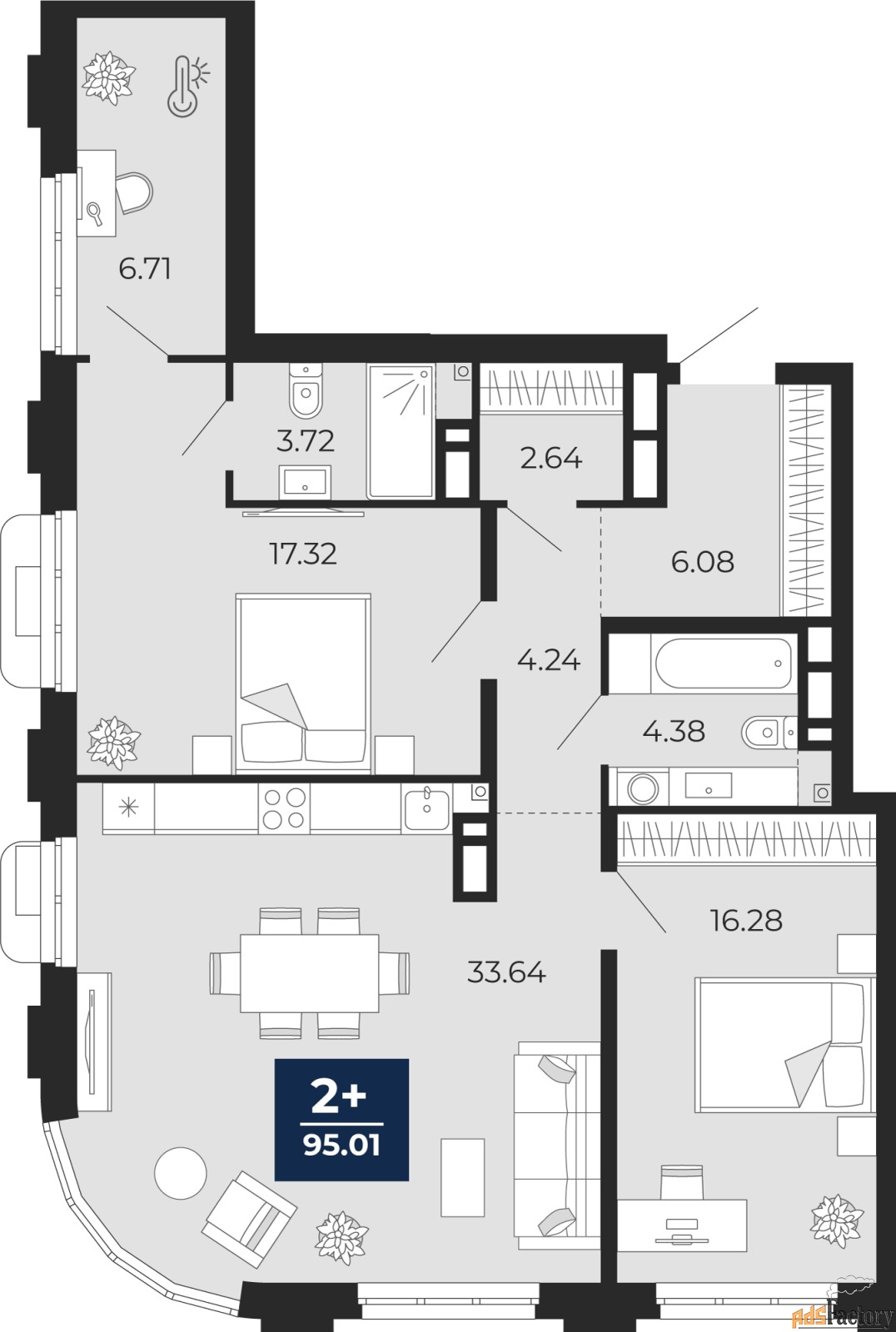 Дом монолитный, многоподъездный, высотой 24 этажа. Квартира находится в 4-й секции в корпусе ГП-13. На этаже 6 квартир. В подъезде 1 пассажирский и 1 грузовой лифт. Окончание строительства - 4 квартал 2027 года. Оформление сделки по договору долевого участия.