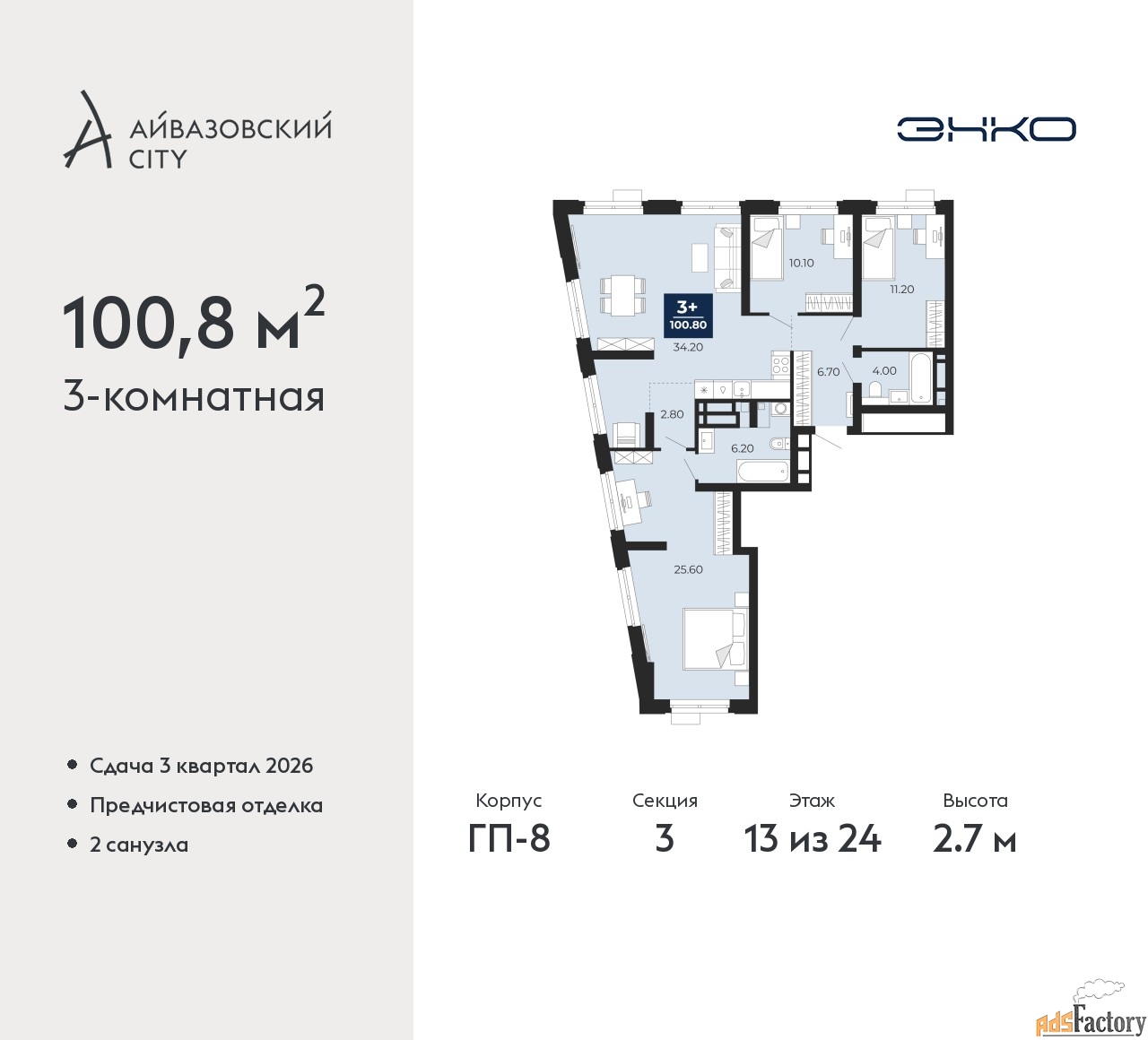 | Общая площадь (кв.м) | 100.8 |