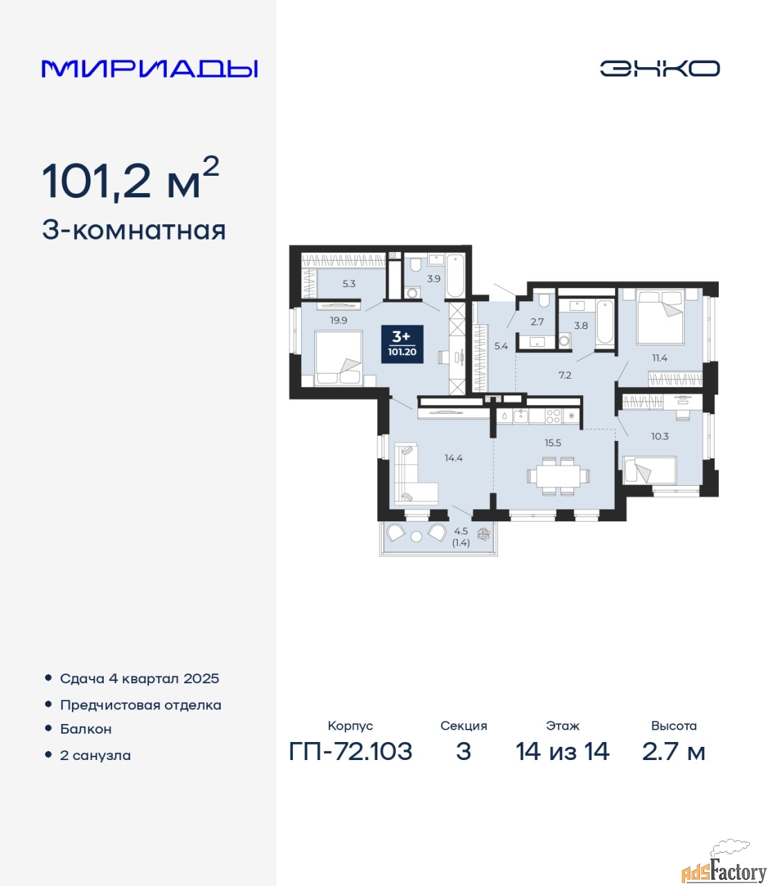 | Общая площадь (кв.м) | 101.2 |
