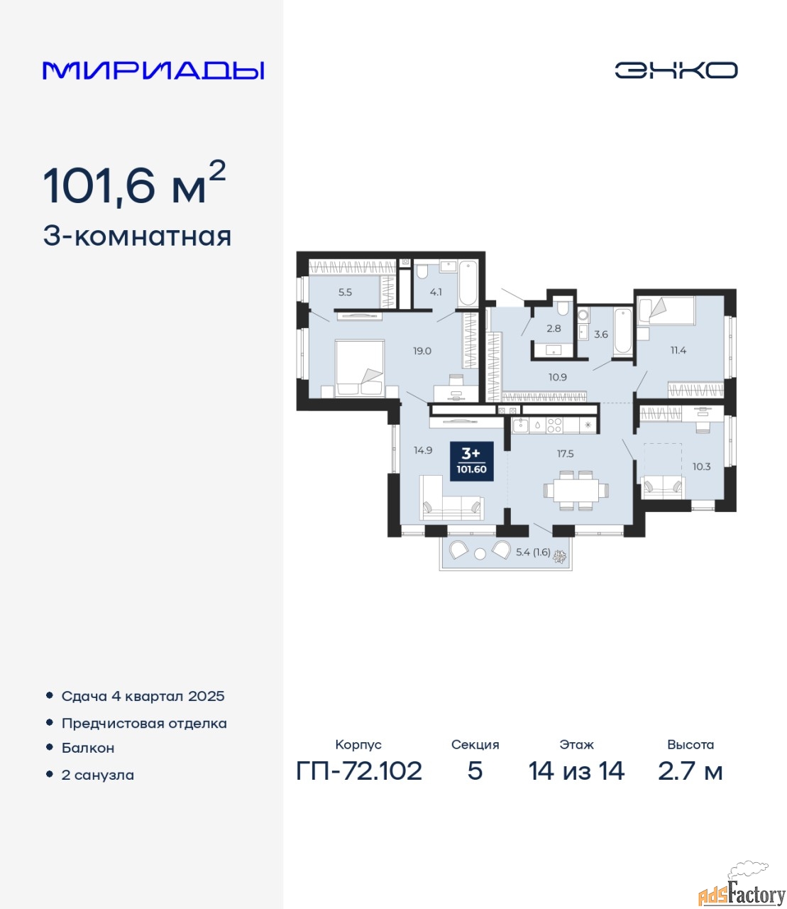 | Общая площадь (кв.м) | 101.6 |