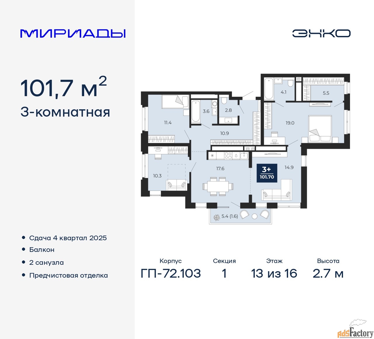 Дом монолитный, трехподъездный, переменной этажности, от 14 до 16 этажей. Квартира находится в 1-й секции высотой 16 этажей в корпусе ГП-72.103. На этаже 8 квартир. В подъезде 1 пассажирский и 1 грузовой лифт. Окончание строительства - 4 квартал 2025 года. Оформление сделки по договору долевого участия.