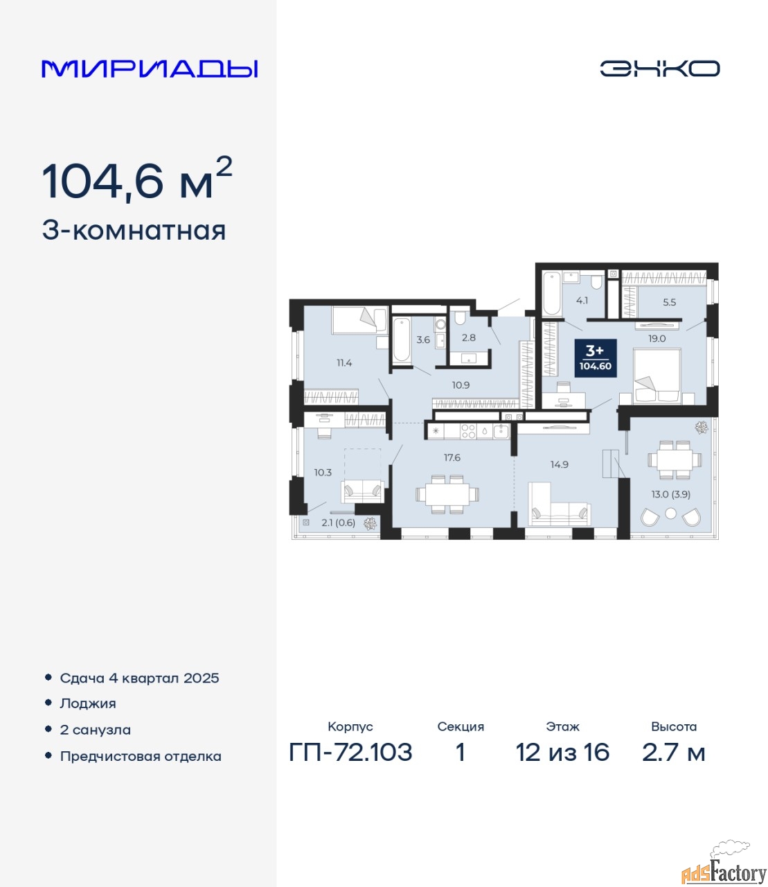 | Общая площадь (кв.м) | 104.6 |