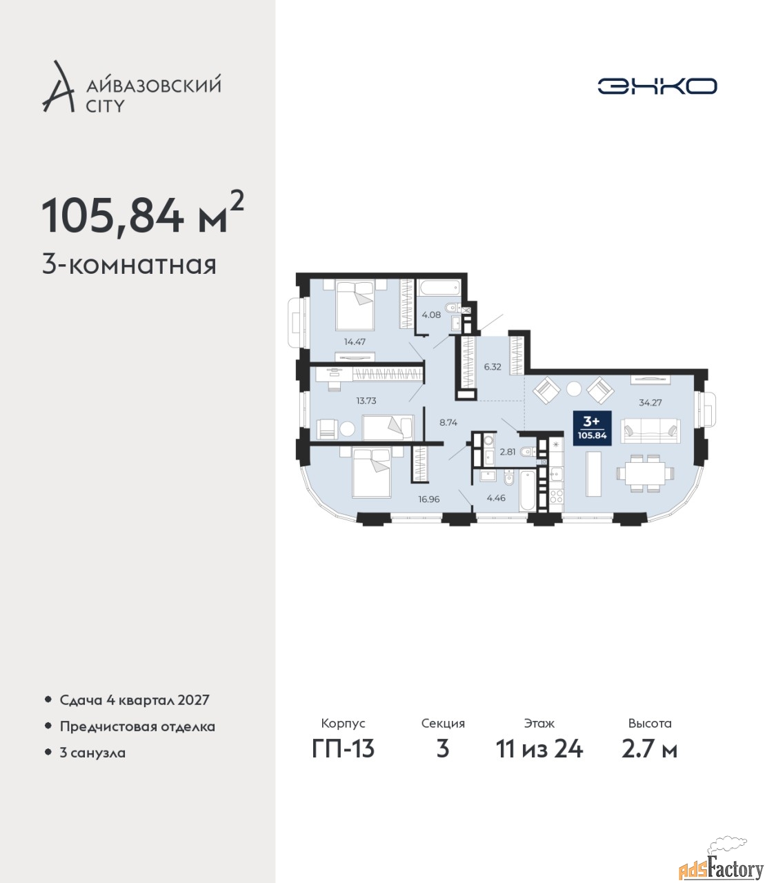 | Площадь кухни (кв.м) | 34.27 |