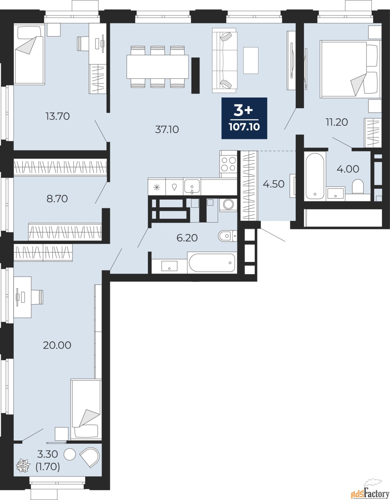 | Общая площадь (кв.м) | 107.1 |