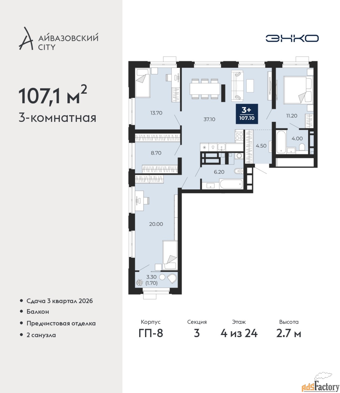 | Общая площадь (кв.м) | 107.1 |