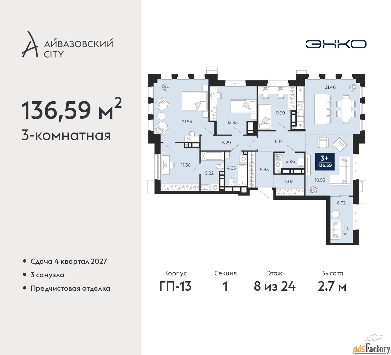 | Общая площадь (кв.м) | 136.59 |