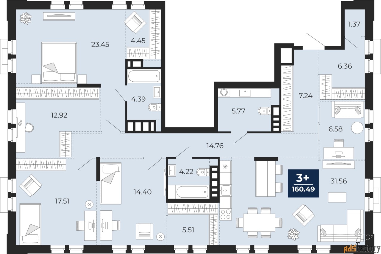 | Общая площадь (кв.м) | 160.49 |