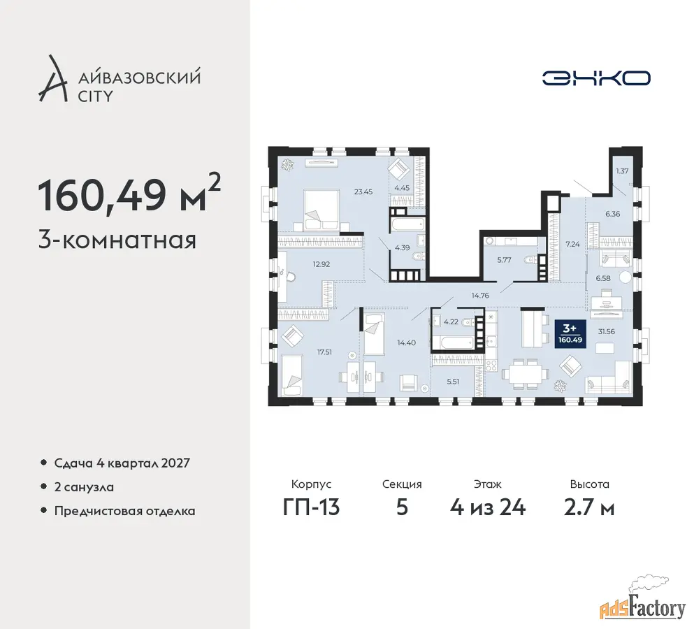 | Общая площадь (кв.м) | 160.49 |