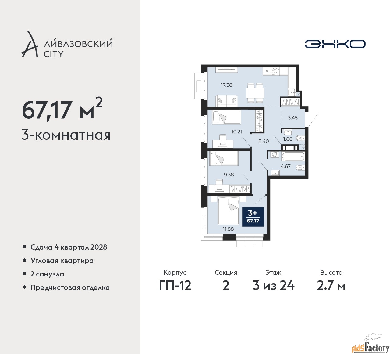 | Общая площадь (кв.м) | 67.17 |