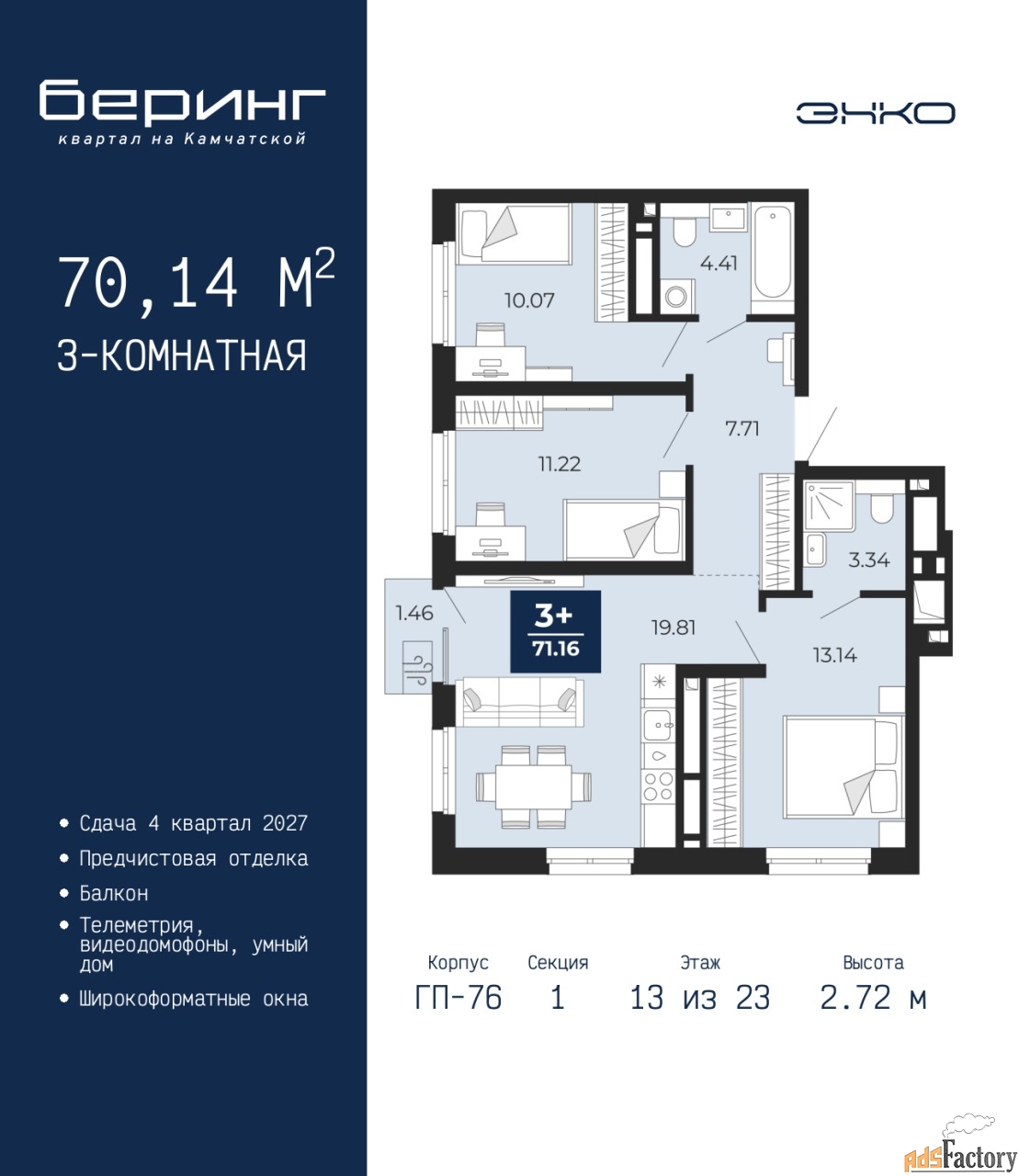| Общая площадь (кв.м) | 70.14 |