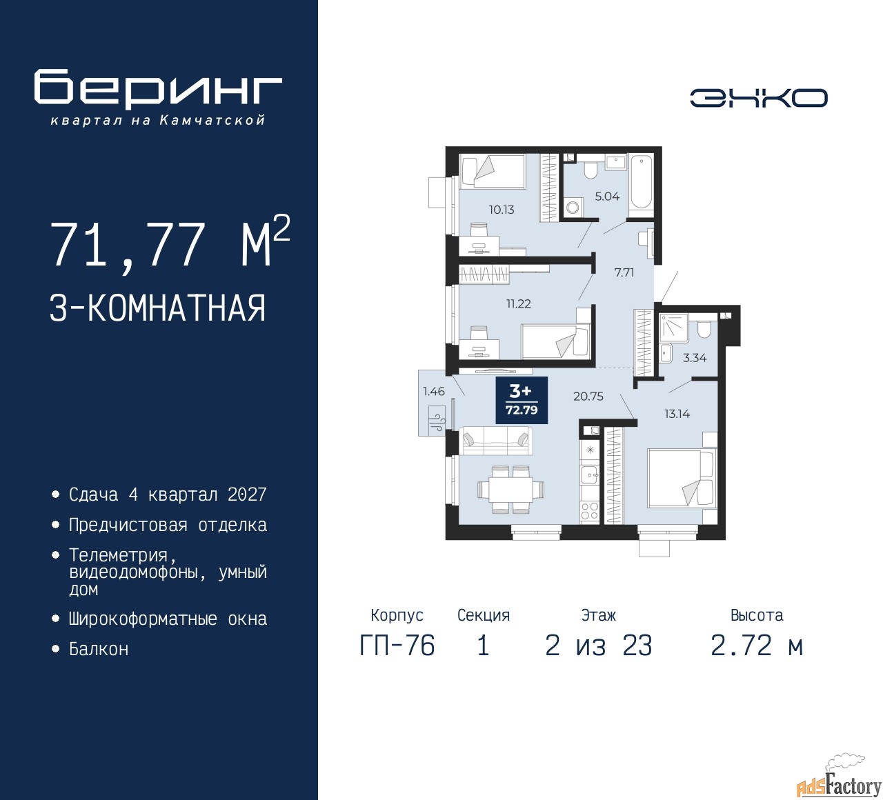 | Общая площадь (кв.м) | 71.77 |