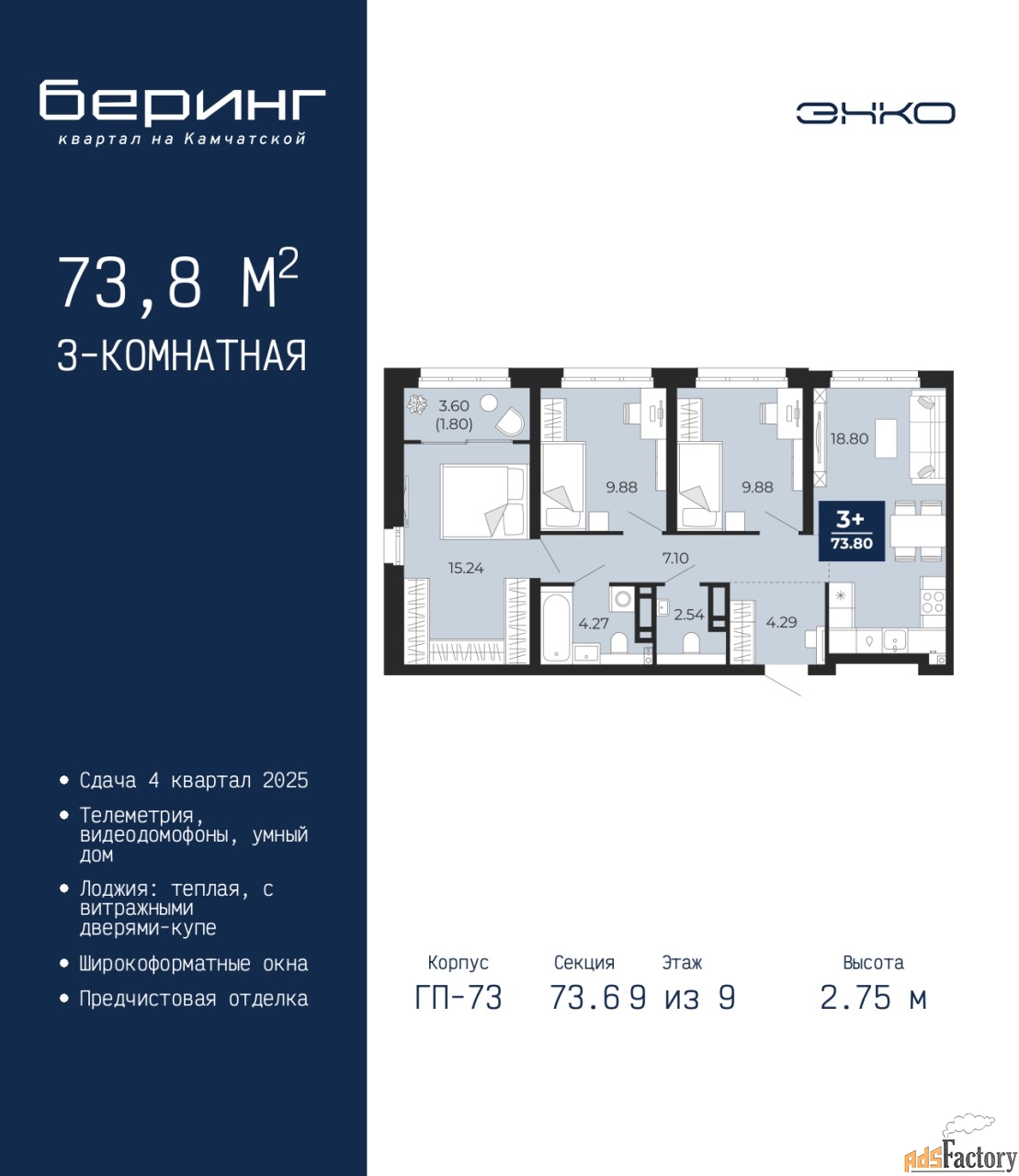 | Общая площадь (кв.м) | 73.8 |