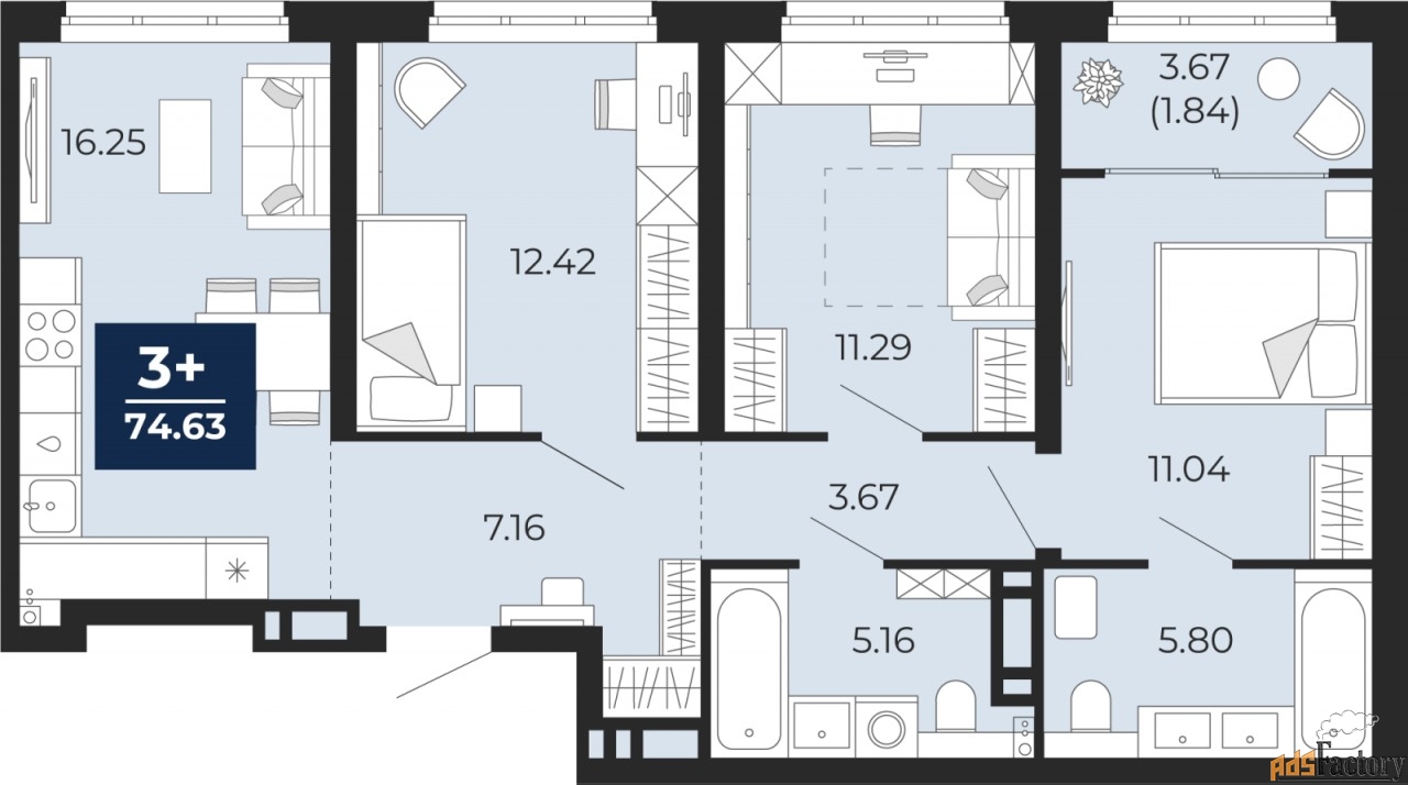 | Общая площадь (кв.м) | 74.63 |