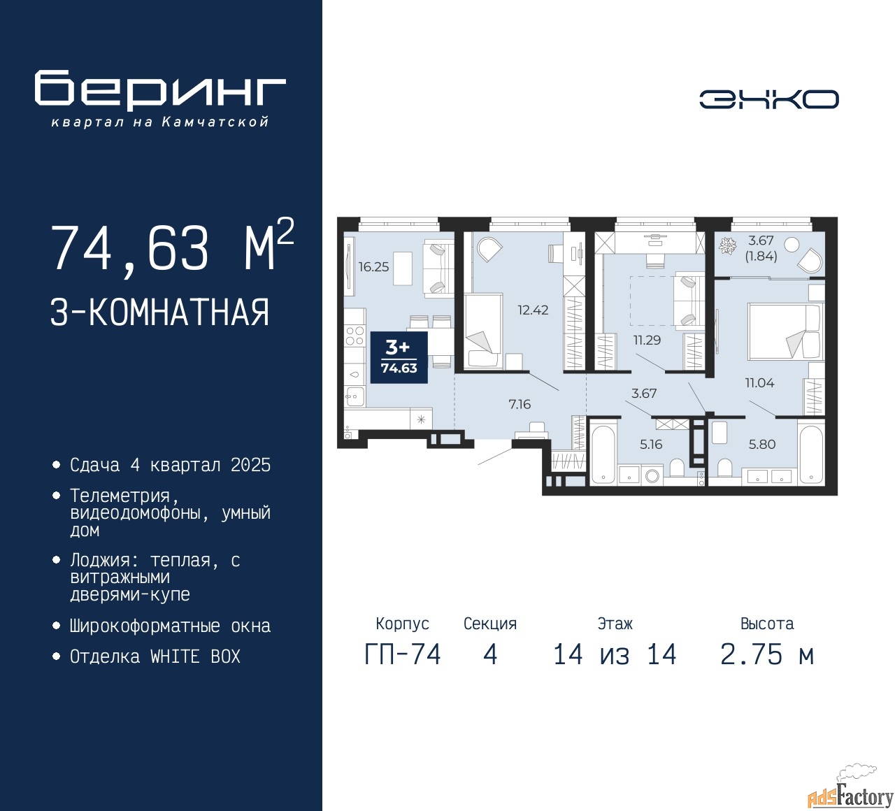| Общая площадь (кв.м) | 74.63 |