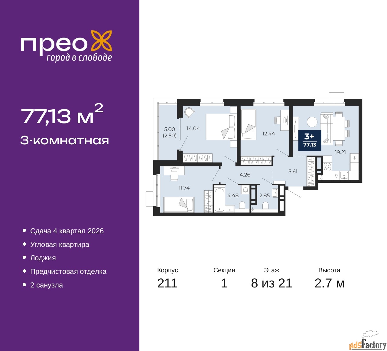 Дом монолитный, черырехподъездный, переменной этажности, от 14 до 21 этажей. Квартира находится в 1-й секции высотой 21 этаж в корпусе 211. На этаже 8 квартир. В подъезде 1 пассажирский и 1 грузовой лифт. Окончание строительства - 4 квартал 2026 года. Оформление сделки по договору долевого участия.