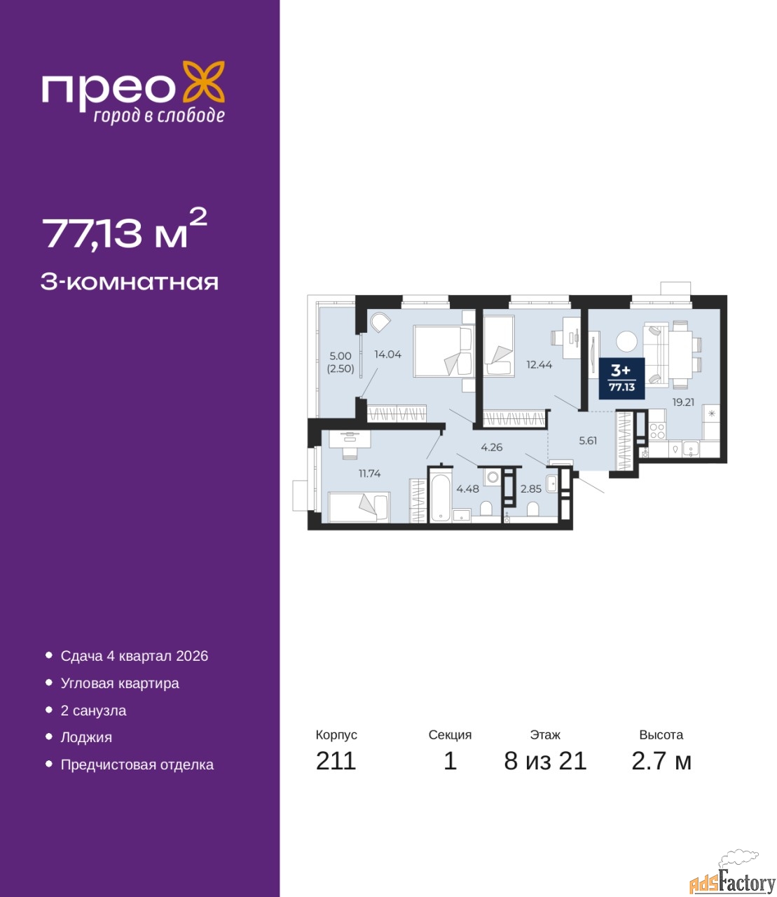 Дом монолитный, черырехподъездный, переменной этажности, от 14 до 21 этажей. Квартира находится в 1-й секции высотой 21 этаж в корпусе 211. На этаже 8 квартир. В подъезде 1 пассажирский и 1 грузовой лифт. Окончание строительства - 4 квартал 2026 года. Оформление сделки по договору долевого участия.