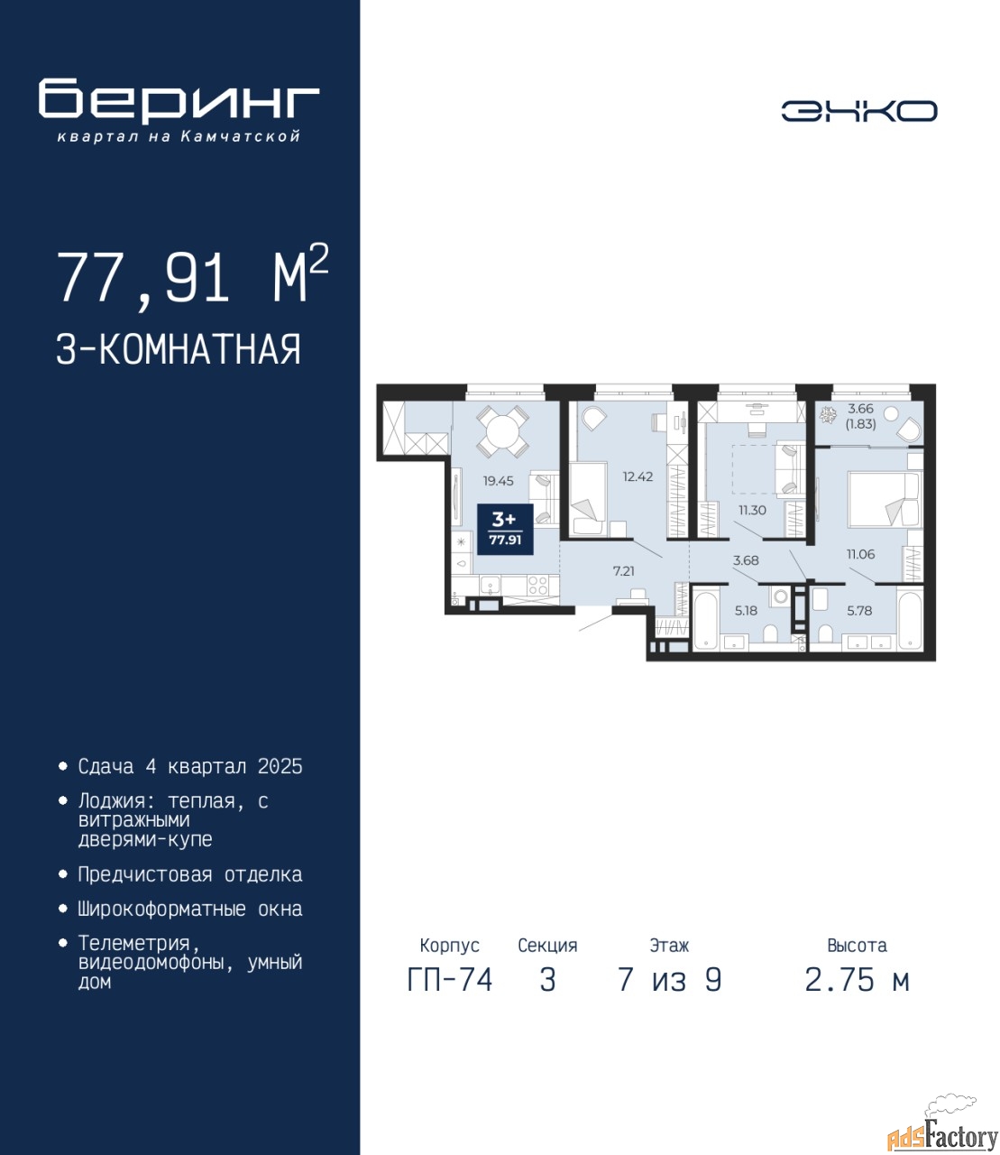 | Общая площадь (кв.м) | 77.91 |