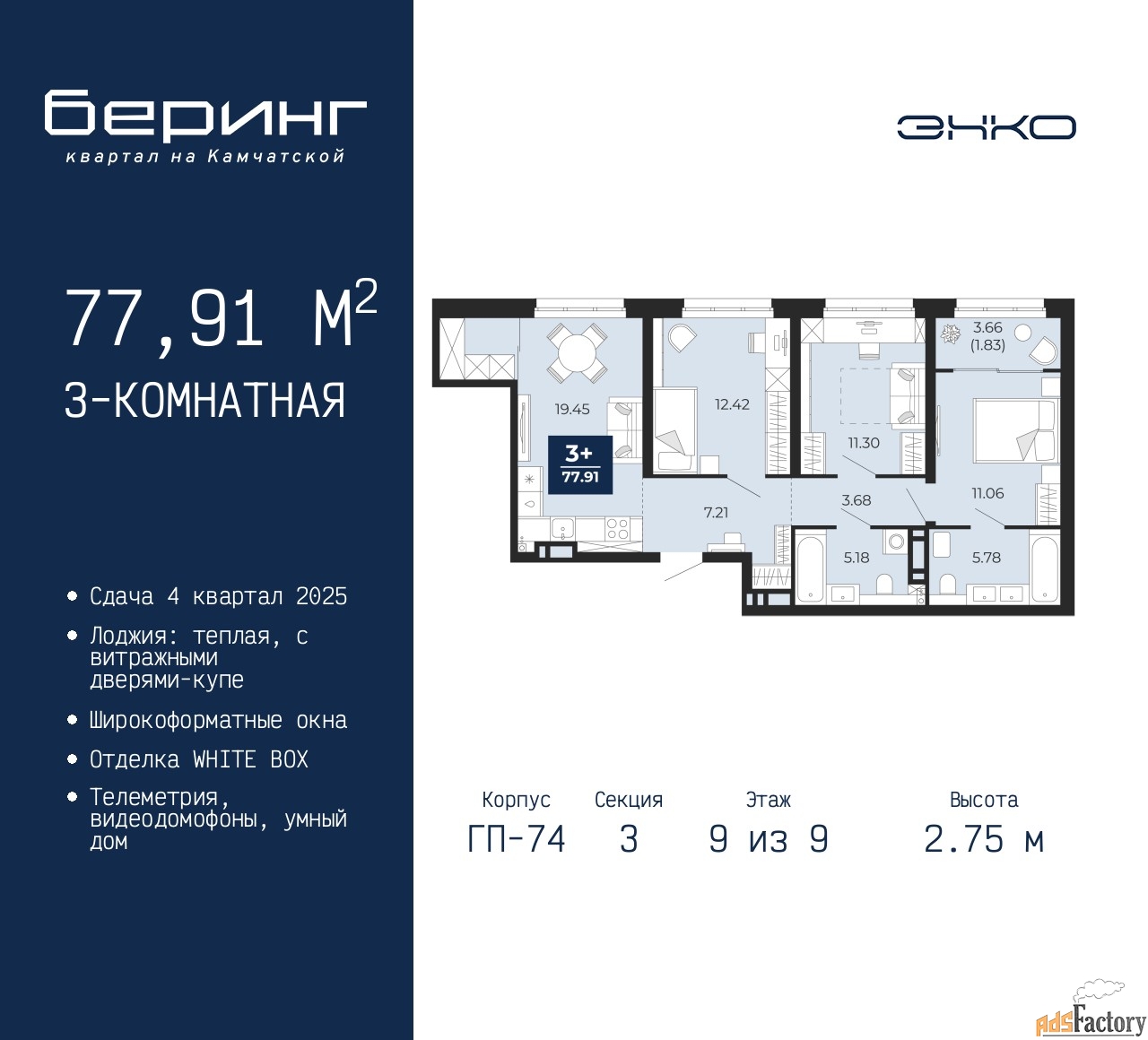| Общая площадь (кв.м) | 77.91 |