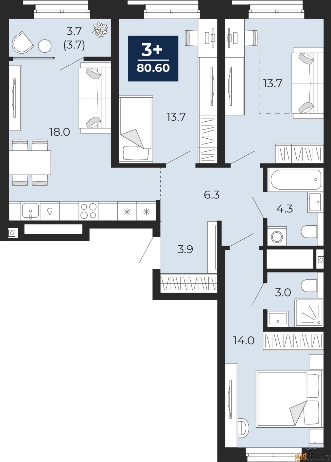| Общая площадь (кв.м) | 80.6 |
