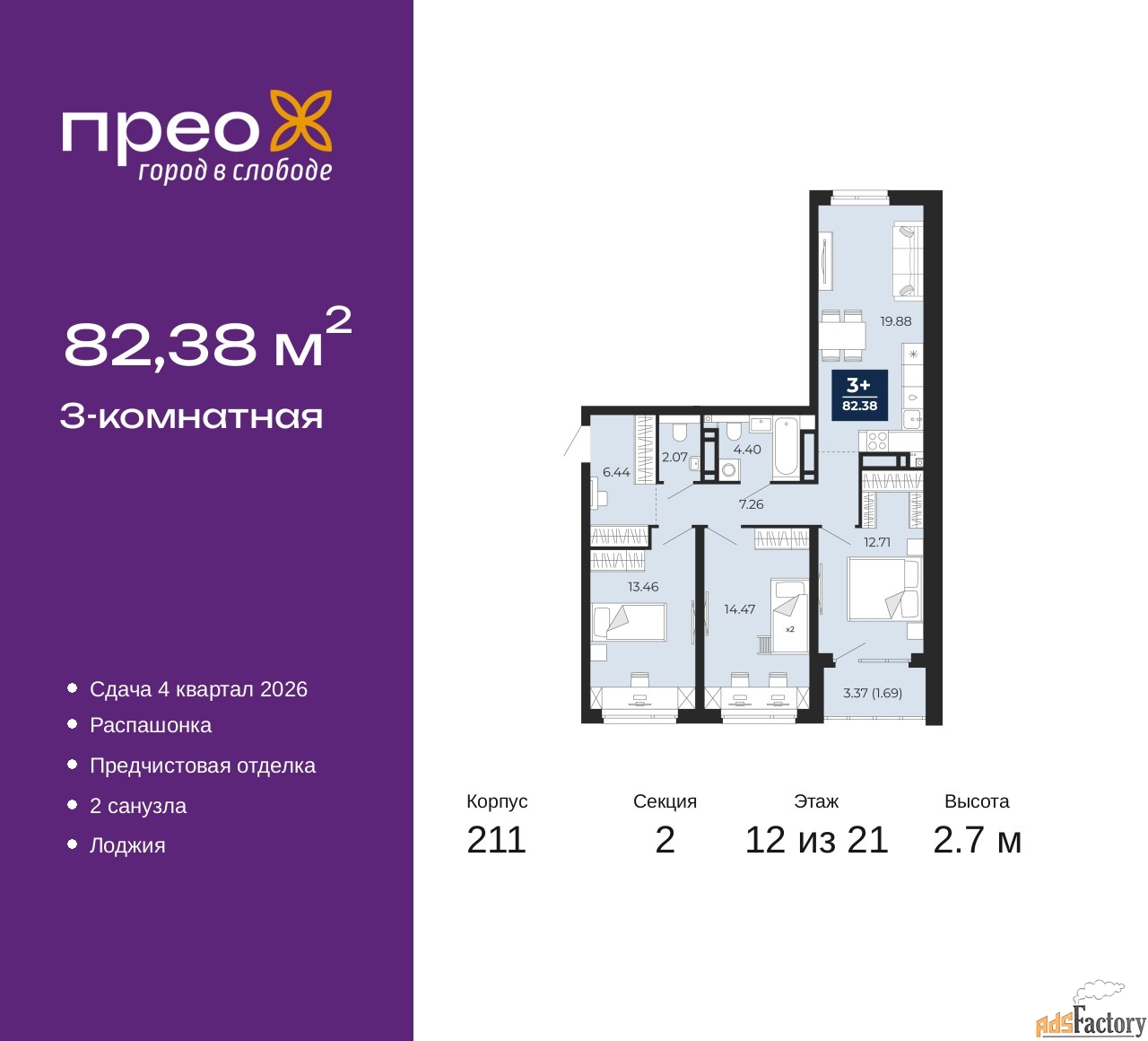 Дом монолитный, черырехподъездный, переменной этажности, от 14 до 21 этажей. Квартира находится во 2-й секции высотой 21 этаж в корпусе 211. На этаже 10 квартир. В подъезде 1 пассажирский и 1 грузовой лифт. Окончание строительства - 4 квартал 2026 года. Оформление сделки по договору долевого участия.