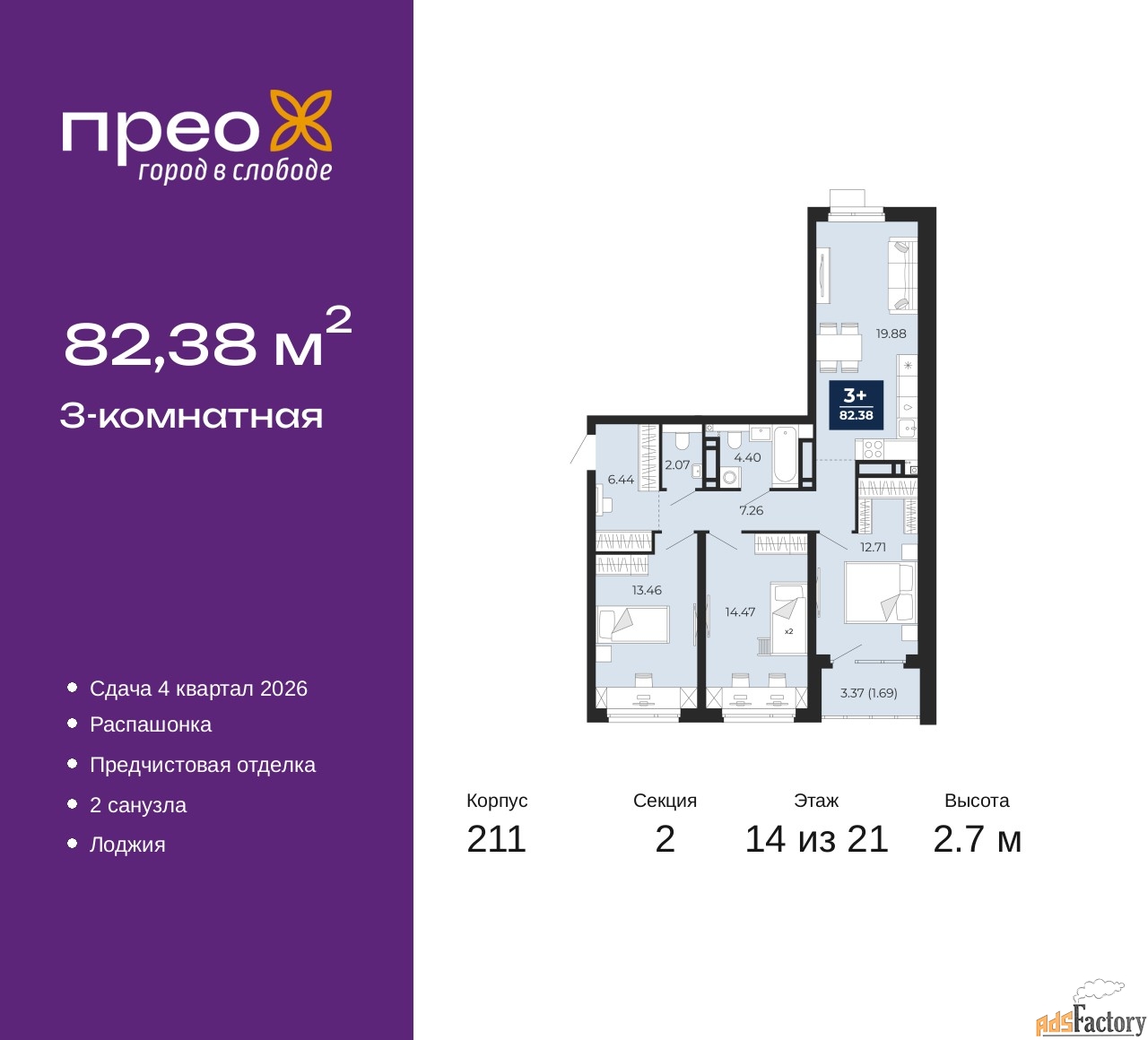| Общая площадь (кв.м) | 82.38 |