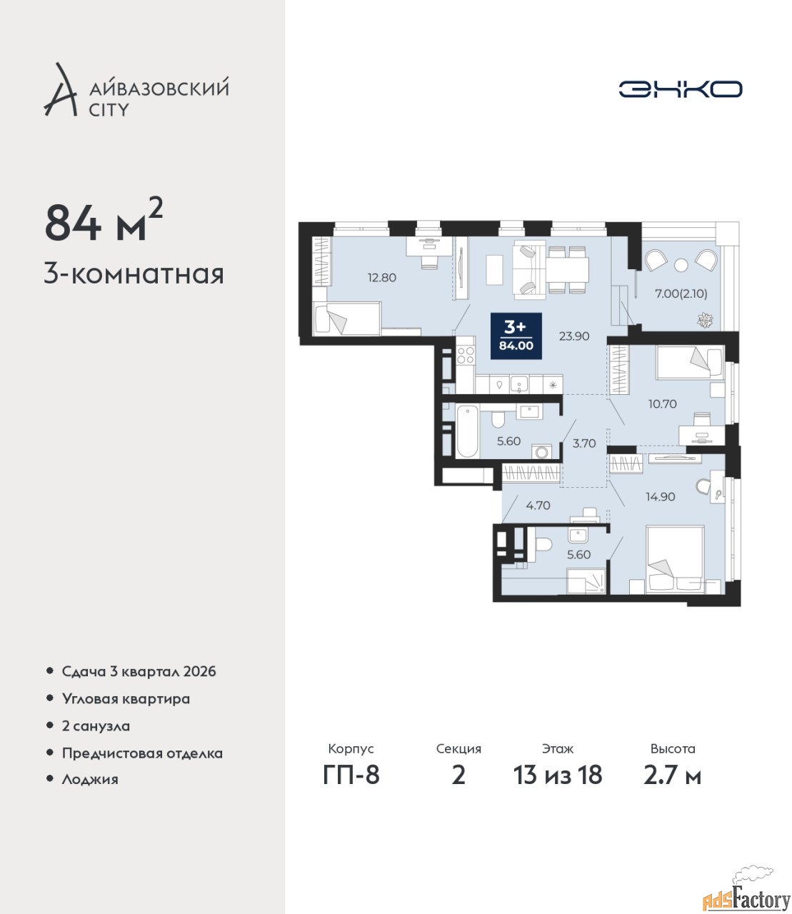 | Общая площадь (кв.м) | 84 |