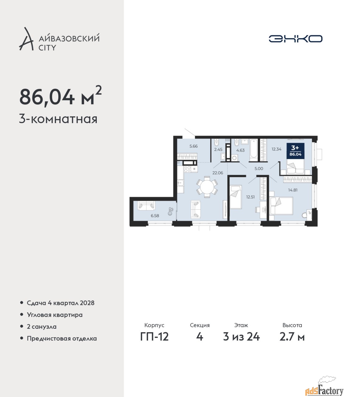Дом монолитный, многоподъездный, высотой 24 этажа. Квартира находится в 4-й секции в корпусе ГП-12. На этаже 5 квартир. В подъезде 1 пассажирский и 1 грузовой лифт. Окончание строительства - 4 квартал 2028 года. Оформление сделки по договору долевого участия.