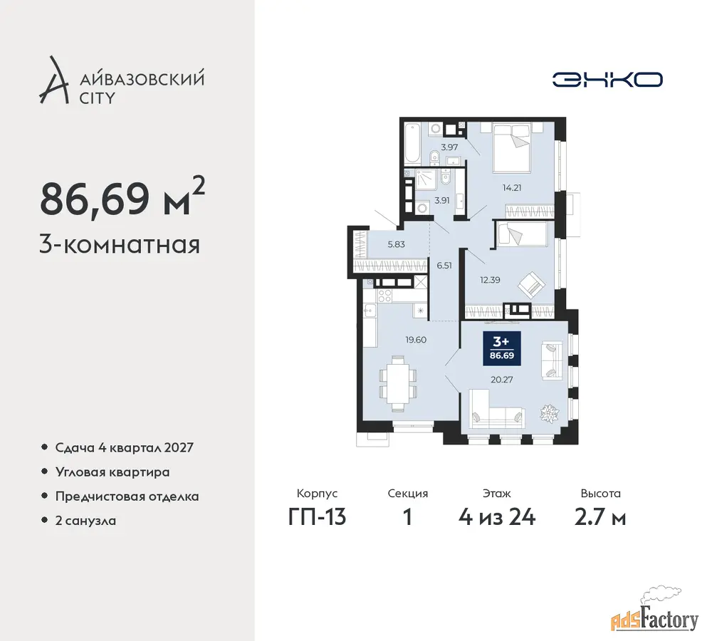 | Общая площадь (кв.м) | 86.69 |