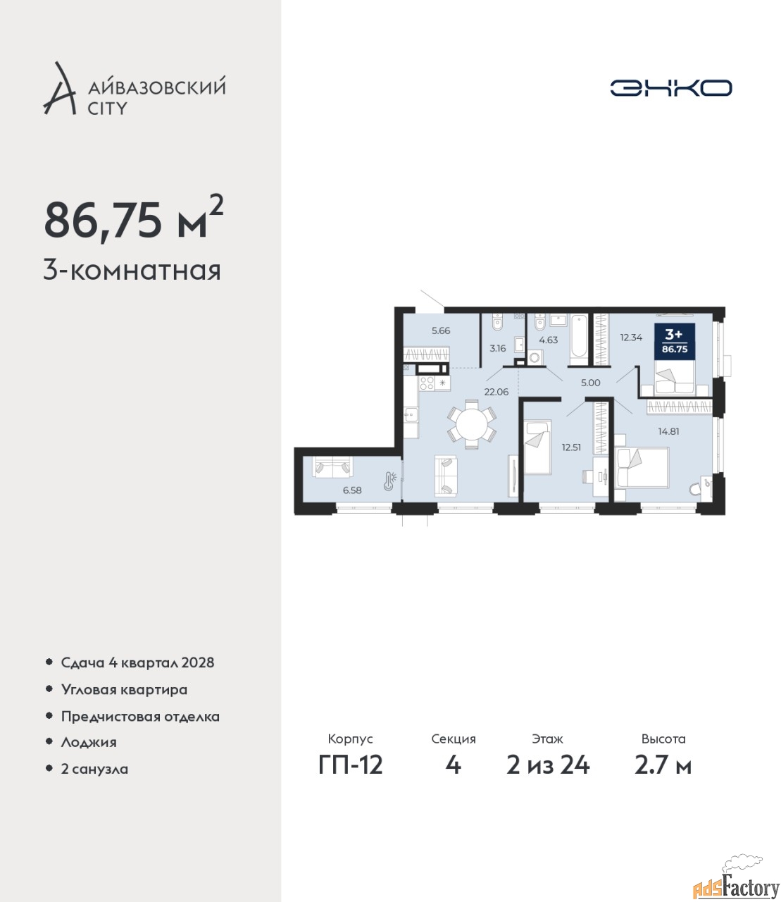 | Общая площадь (кв.м) | 86.75 |