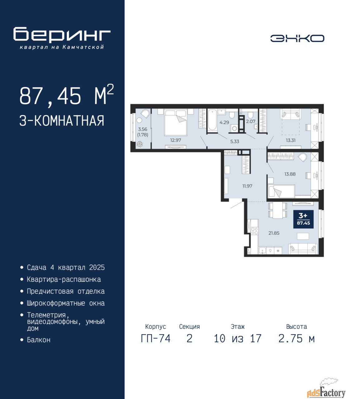 | Общая площадь (кв.м) | 87.45 |