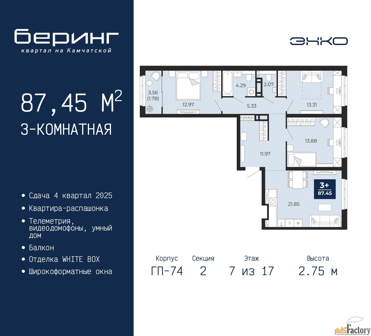 | Общая площадь (кв.м) | 87.45 |