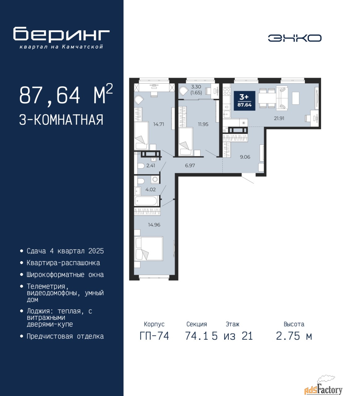 | Общая площадь (кв.м) | 87.64 |