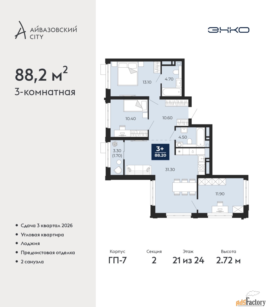 | Общая площадь (кв.м) | 88.2 |