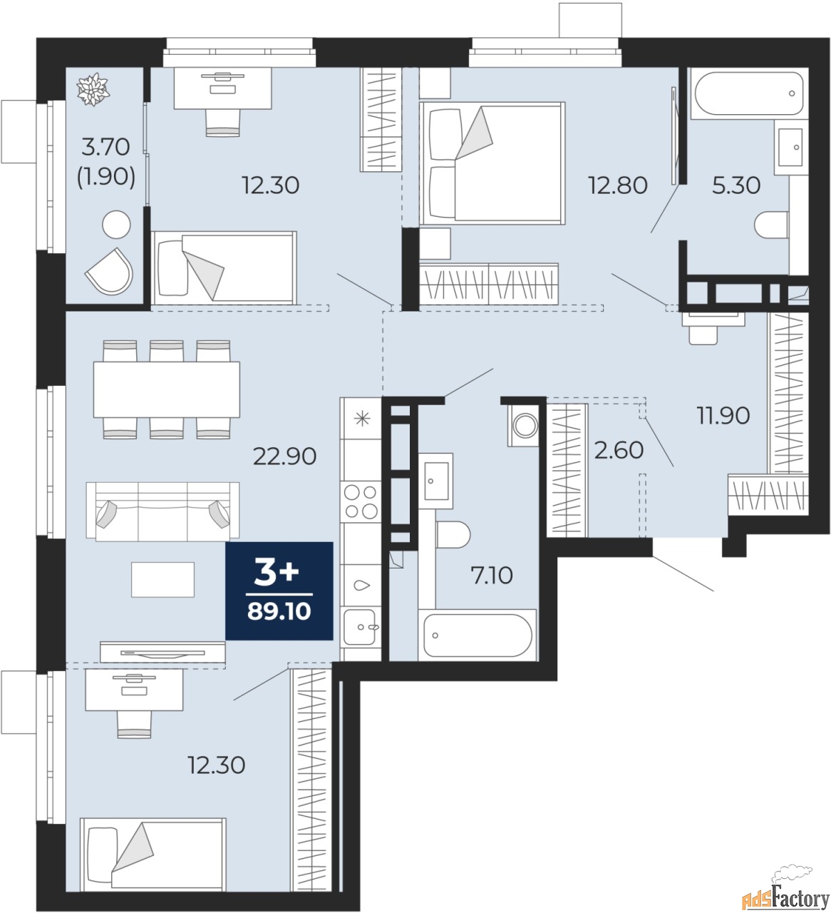 | Общая площадь (кв.м) | 89.1 |