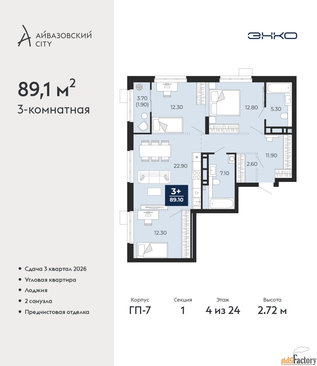 | Общая площадь (кв.м) | 89.1 |