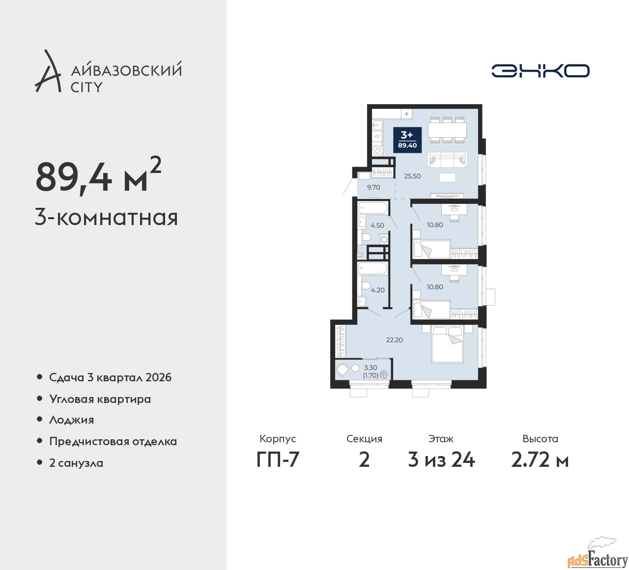 Дом монолитный, многоподъездный, переменной этажности, от 9 до 24 этажей. Квартира находится во 2-й секции высотой 24 этажа в корпусе ГП-7. На этаже 7 квартир. В подъезде 1 пассажирский и 2 грузовых лифта. Окончание строительства - 3 квартал 2026 года. Оформление сделки по договору долевого участия.