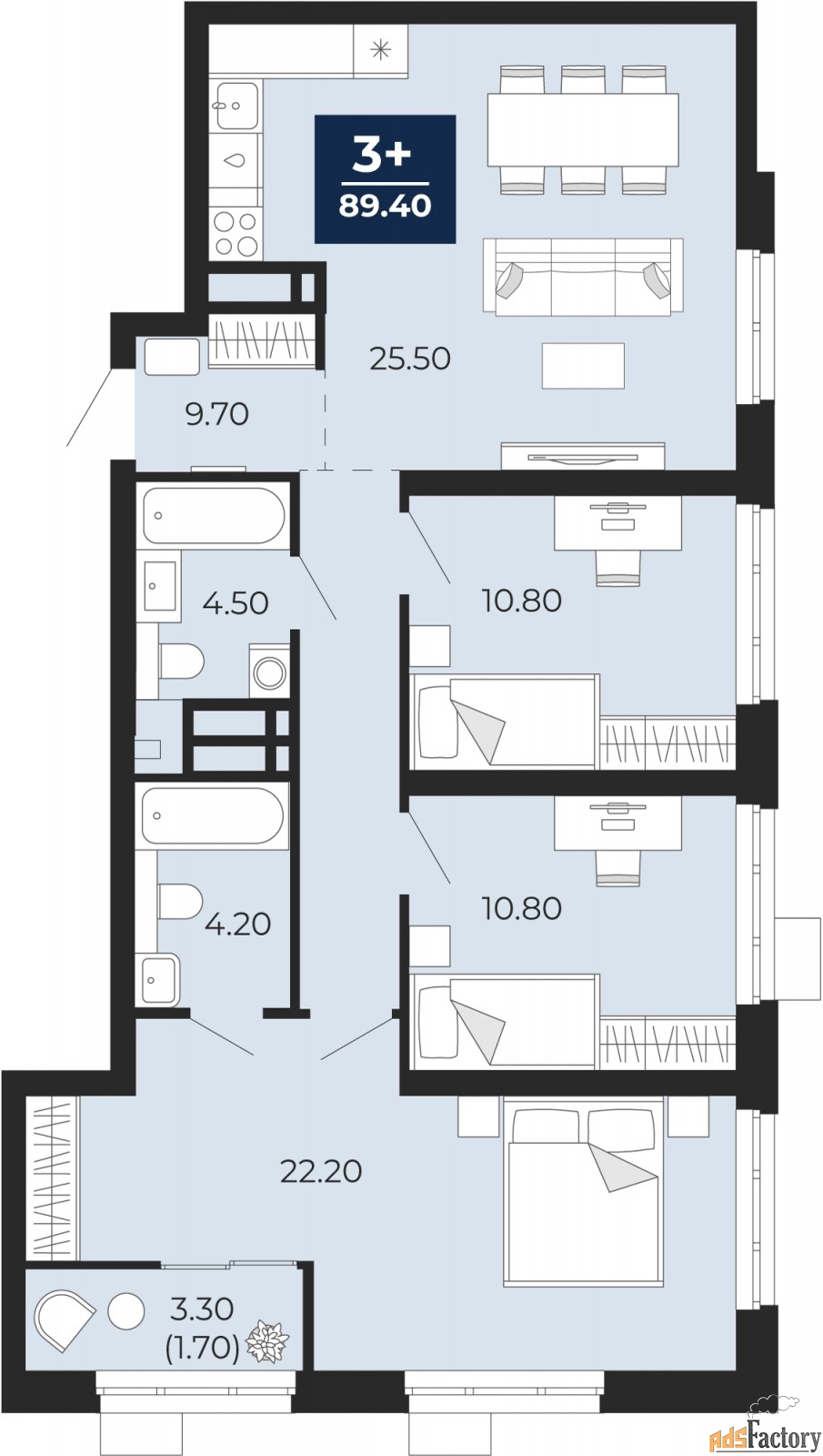 | Общая площадь (кв.м) | 89.4 |